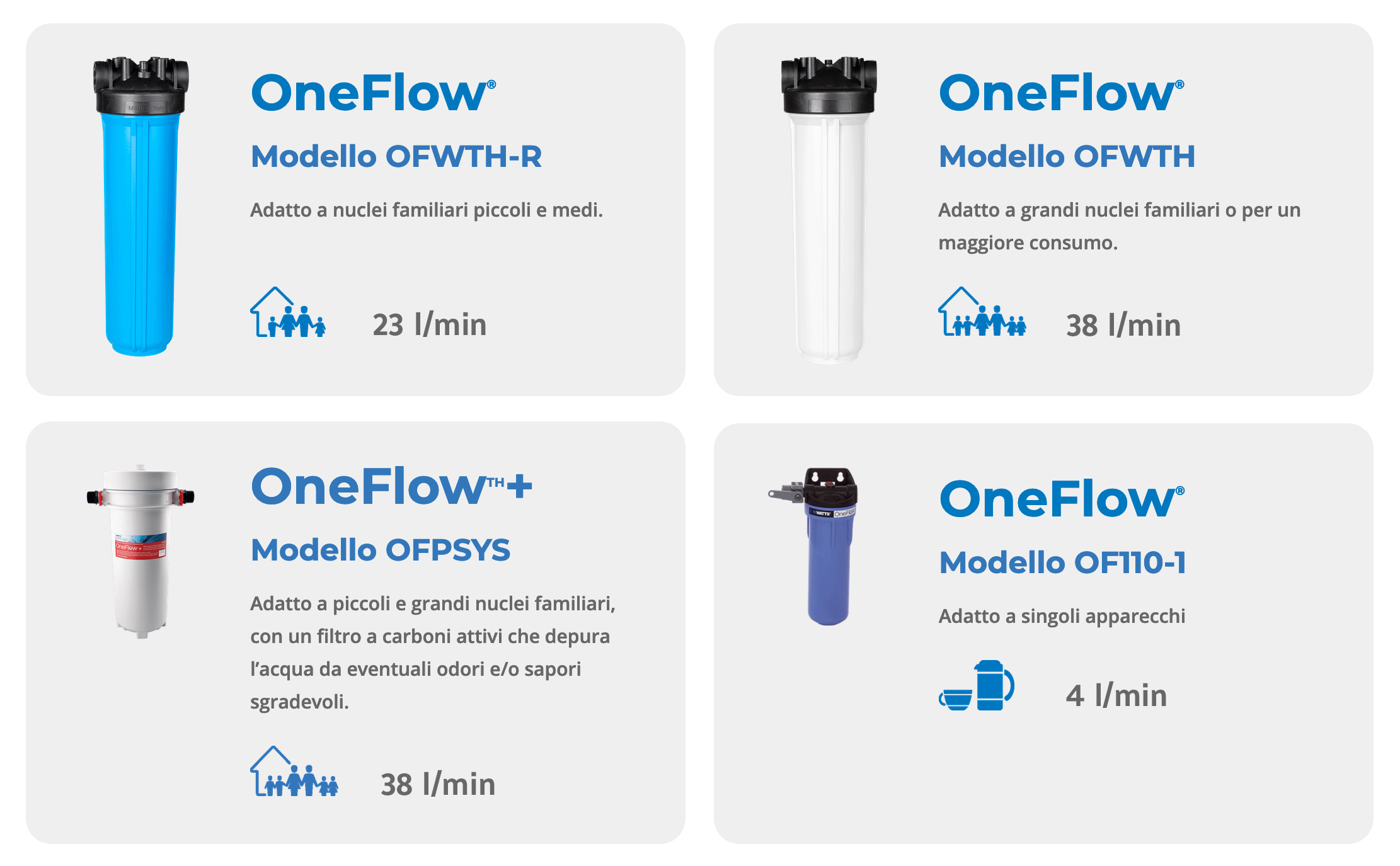 - OneFlow® OFW-THR per nuclei familiari medio/piccoli con un consumo fino a 23/lm