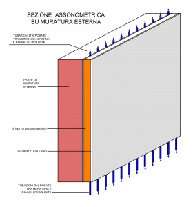 Ideato dall’ing. Gianfranco Pellegrini, il Cappotto Attivo consiste in un impianto di distribuzione dei fluidi termovettori per il riscaldamento invernale e il raffrescamento estivo, basato su una pompa di calore, posta fra l’involucro edilizio esistente e il rivestimento a cappotto esterno.