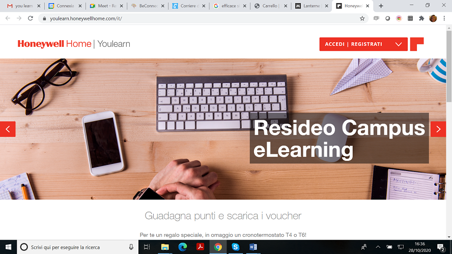 La piattaforma di eLearning è accessibile tramite registrazione con il proprio indirizzo email. Una volta registrati, gli utilizzatori guadagnano punti per ciascun modulo completato, in base ai punti ottenuti possono scaricare un voucher per richiedere il prodotto Resideo definito.