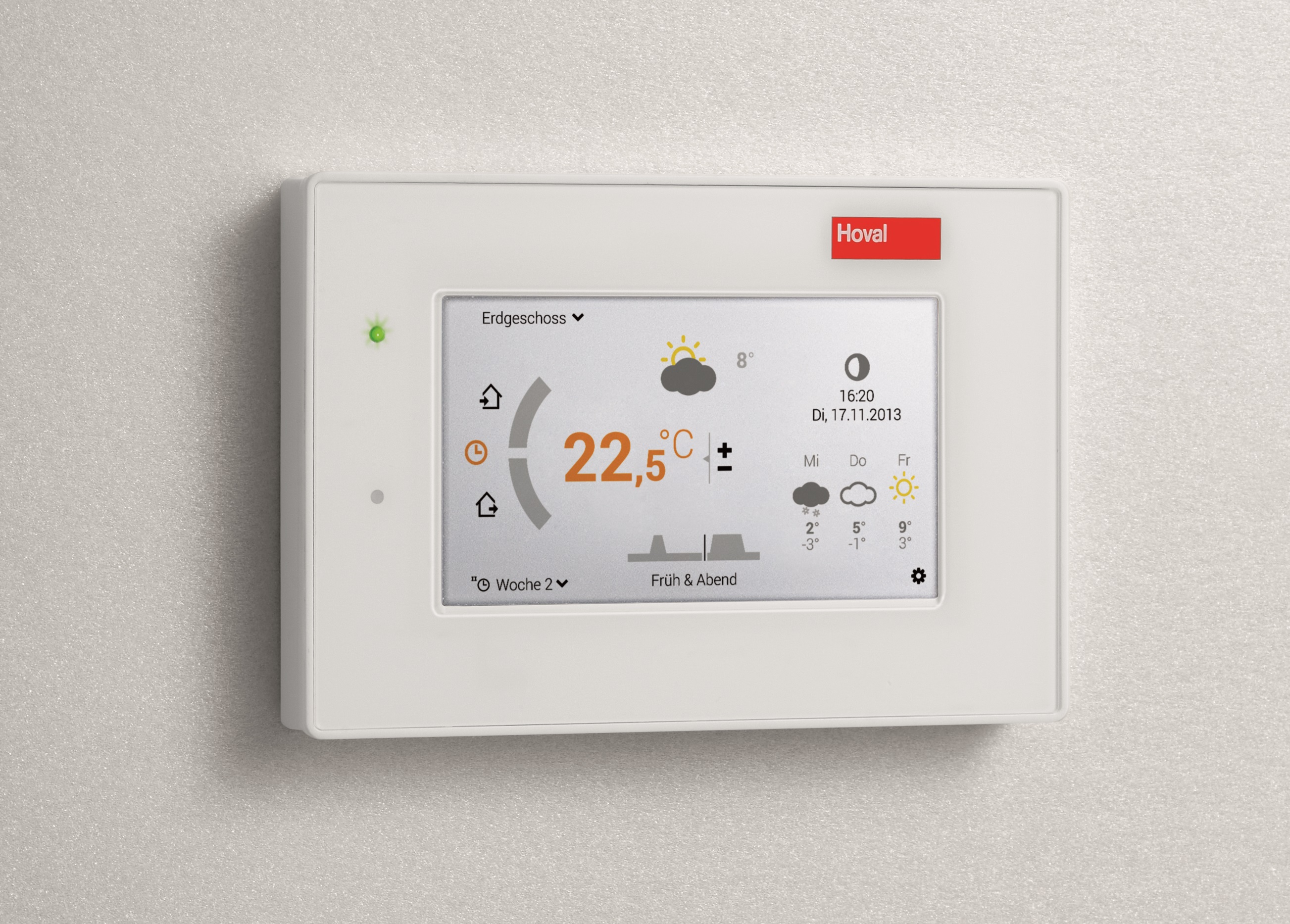 A fare la differenza, sulle caldaie di nuova generazione Hoval, c’è anche un sistema di regolazione particolarmente innovativo che consente all’impianto di “capire” la temperatura esterna attuale e quella prevista nei giorni successivi, regolando e predisponendo quindi il consumo di energia in base alle necessità reali e non semplicemente presunte.
