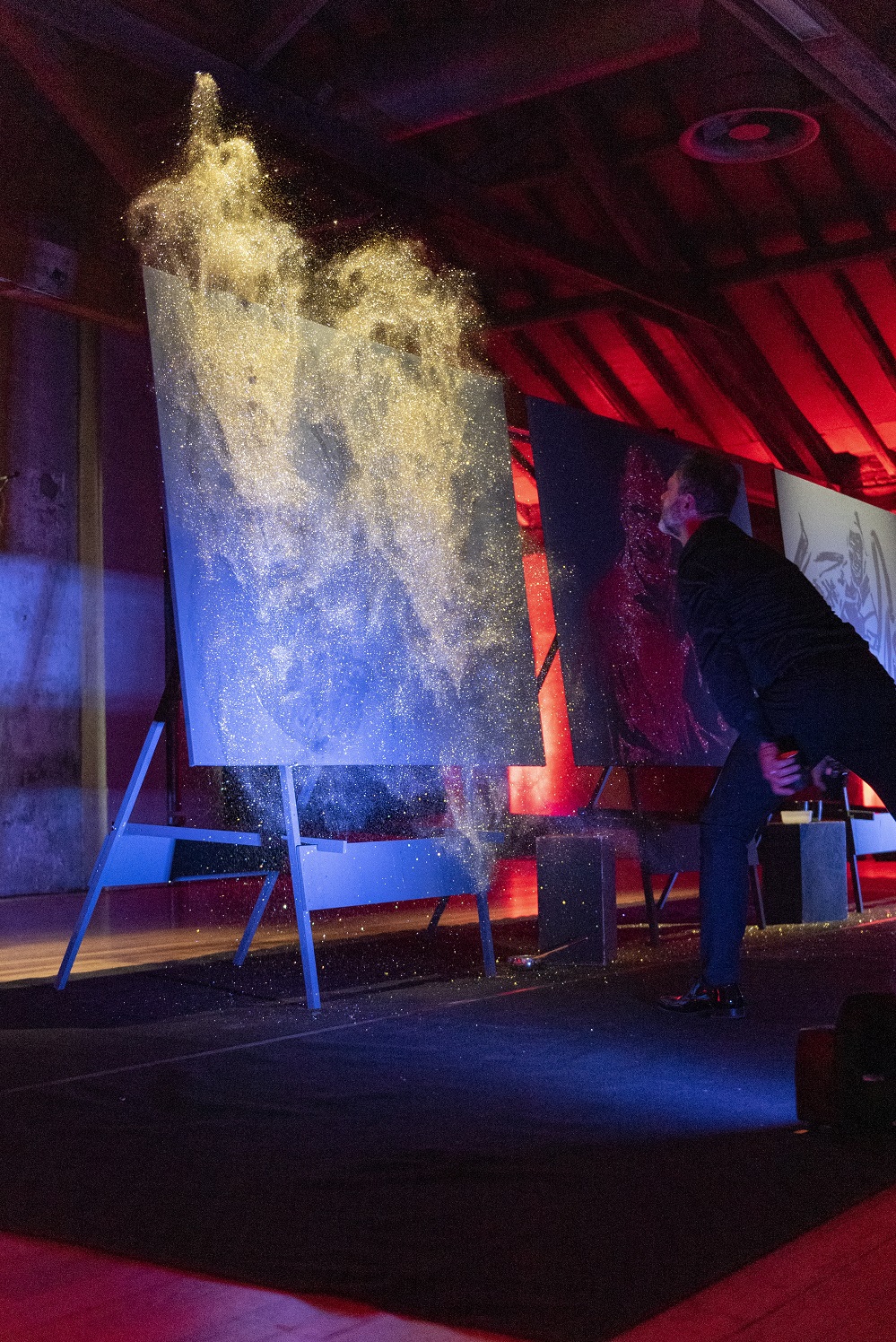 La spettacolare performance dell’artista internazionale Michael Raivard, ideatore del Glitter Portrait