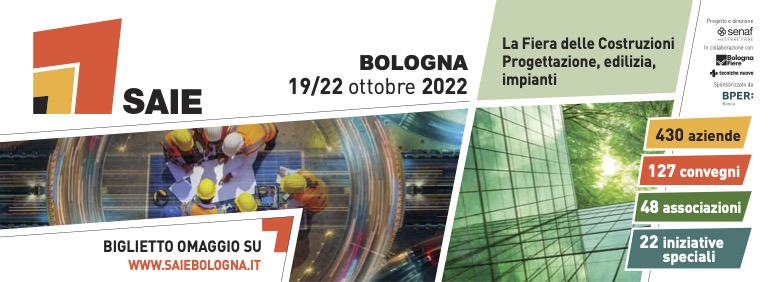 Il mercato delle costruzioni si incontra a SAIE 2022 (BolognaFiere, 19 – 22 ottobre), qui il link per registrare omaggio la visita.