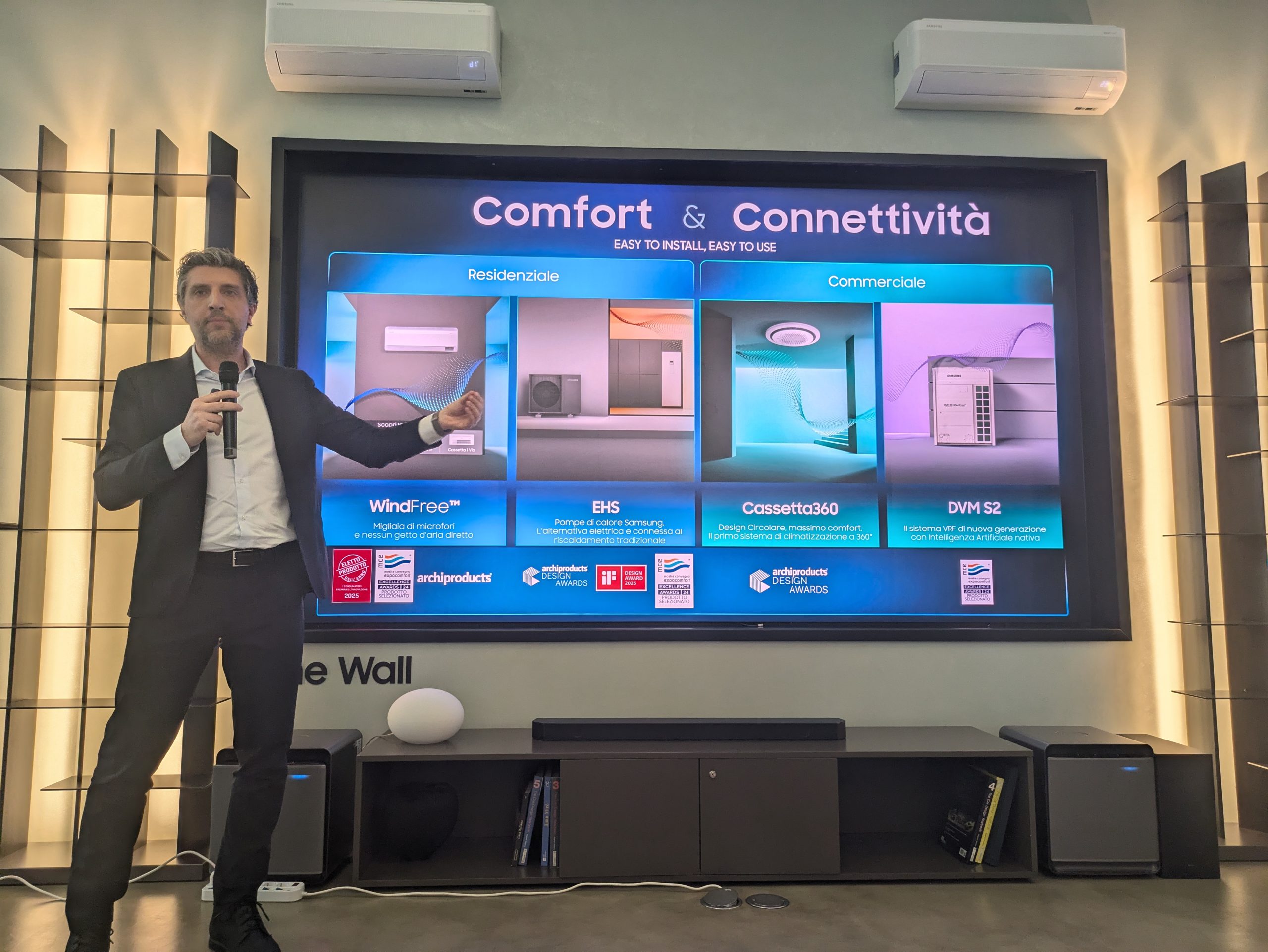 “Le sfide imposte dal Green Deal includono la necessità di migliorare l’efficienza energetica, adottare soluzioni a basso impatto ambientale e rispettare normative più rigorose, per questo siamo più determinati che mai a consolidare e rafforzare la nostra posizione di leadership nei comparti residenziale e terziario – ha dichiarato Ettore Jovane, Vice President HVAC Business di Samsung Electronics Italia – Vogliamo essere degli innovatori nel mercato della climatizzazione e del riscaldamento, proponendo soluzioni all’avanguardia che rispondano tanto alle esigenze di alte prestazioni quanto alla crescente domanda di efficientamento energetico. Le nostre tecnologie, che permettono una gestione da remoto, sono progettate per ridurre l’impatto ambientale e ottimizzare i consumi, garantendo al contempo il massimo comfort e il miglioramento continuo delle performance anche grazie all’intelligenza artificiale”.