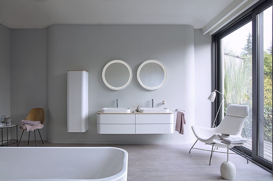 Nel 2019, con Happy D.2 Plus, Duravit e sieger design realizzano una raffinata gamma contemporanea in termini di colori, forme e superfici. L’arco archetipico del classico del design Happy D. contraddistingue anche gli elementi del nuovo programma complementare. Bacinelle soprapiano dalle linee precise, consolle in solitario con colonne basse e specchi rotondi abbinati creano zone lavabo perfettamente coordinate. Con il nuovo programma è possibile realizzare soluzioni individuali dallo stile elegante-espressivo, in un mood chiaro o scuro.