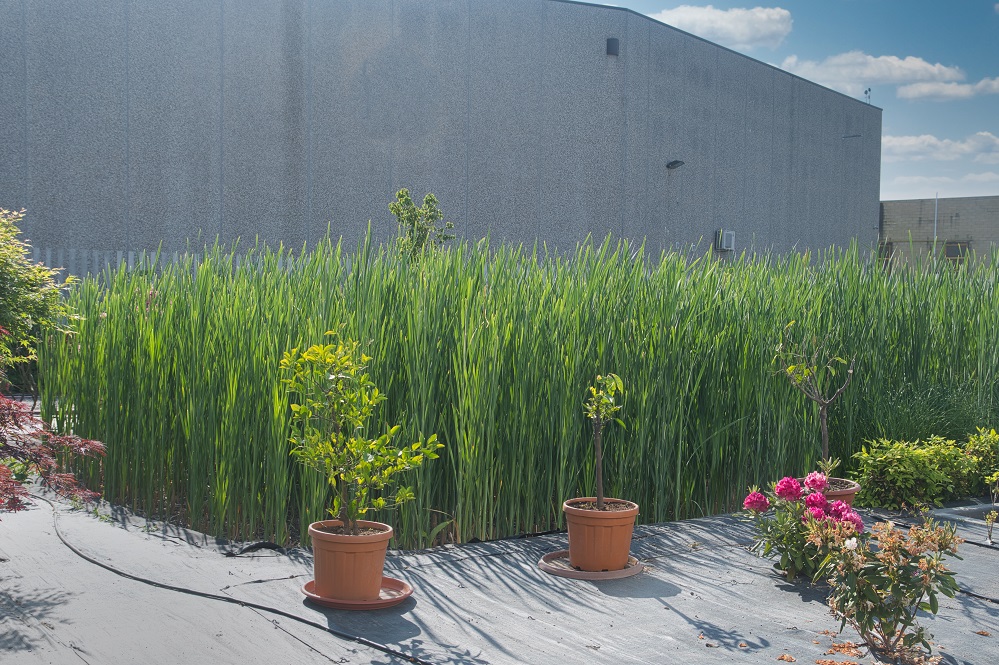 Acidofile e piante adibite alla fitodepurazione completano l’area verde che contribuisce a mitigare le temperature esterne. Gli uffici interni, ma anche la stessa area di produzione e dimostrazione, ospitano piante simbolo di benessere e comfort lavorativo.