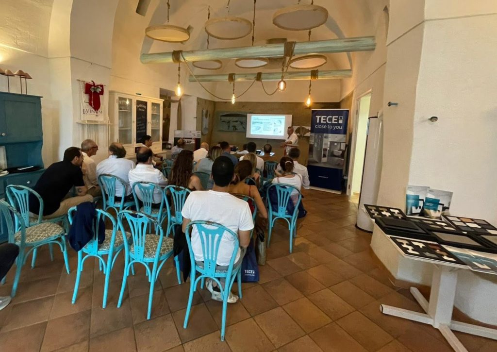 Il secondo appuntamento si è tenuto presso la Cantina Agriturismo Lavinium di Monte di Procida (NA), con la sua splendida terrazza affacciata sul Golfo. L’incontro, organizzato con la collaborazione del rivenditore Edil Santa Chiara, è stata l’occasione per presentare ai professionisti intervenuti il nostro sistema TECEprofil, per la costruzione di pareti a secco, flessibili e in grado di disegnare perfettamente tutti gli spazi, anche quelli più ridotti.
