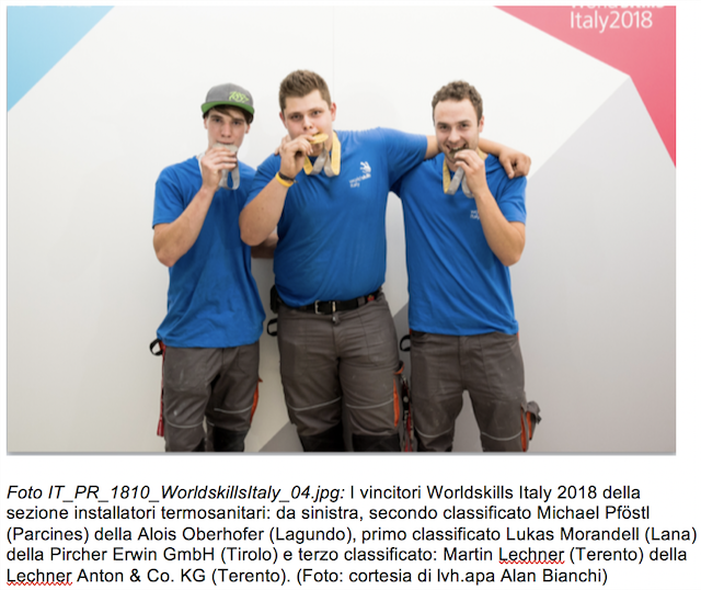 Oltre 20.000 visitatori hanno seguito le gare di questo grande laboratorio di giovani talenti. I vincitori di questo segmento sono: primo classificato Lukas Morandell (Lana) della Pircher Erwin GmbH (Tirolo), secondo classificato Michael Pföstl (Parcines) della Alois Oberhofer (Lagundo) e al terzo posto: Martin Lechner (Terento) della Lechner Anton & Co. KG (Terento).