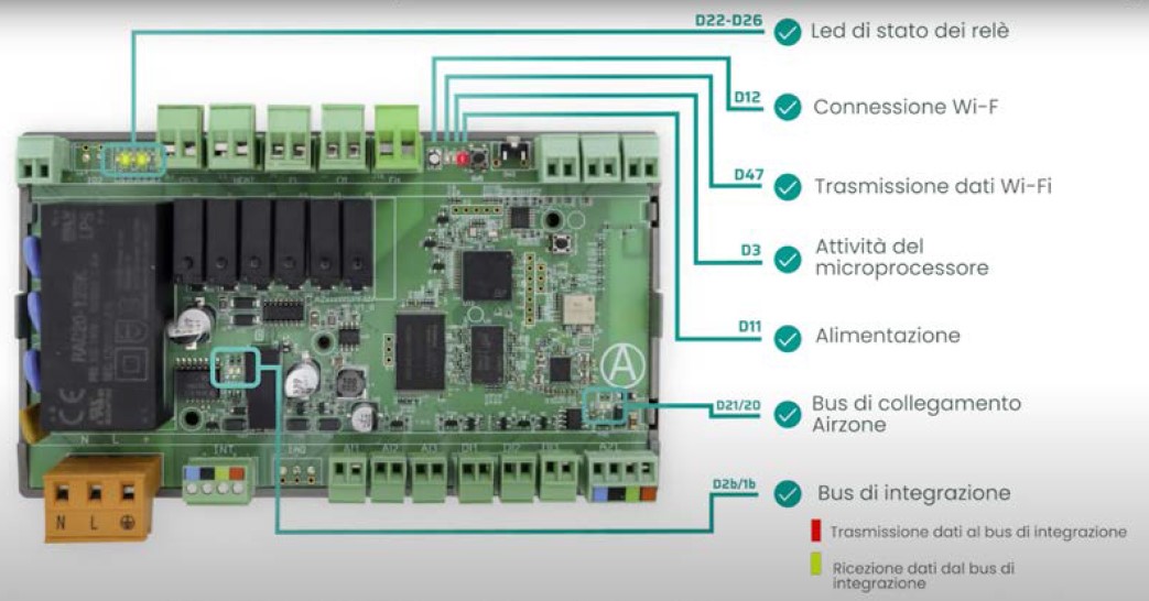 - 2 relè per controllo di elettrovalvole a domanda;