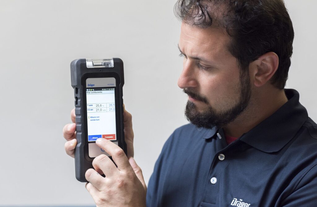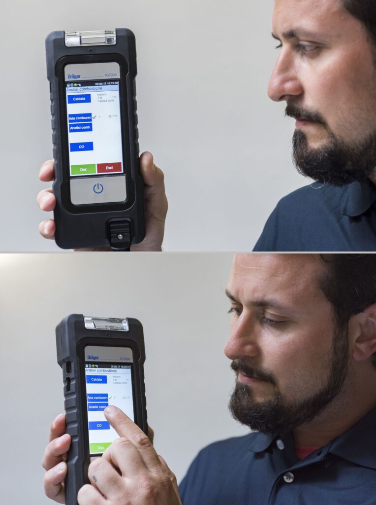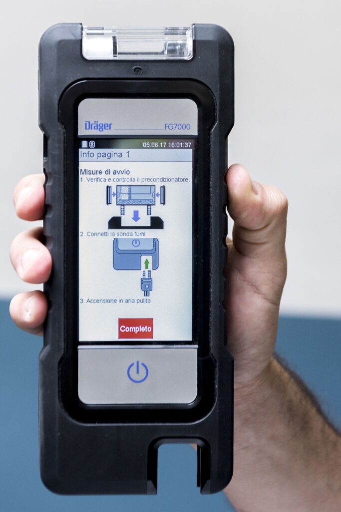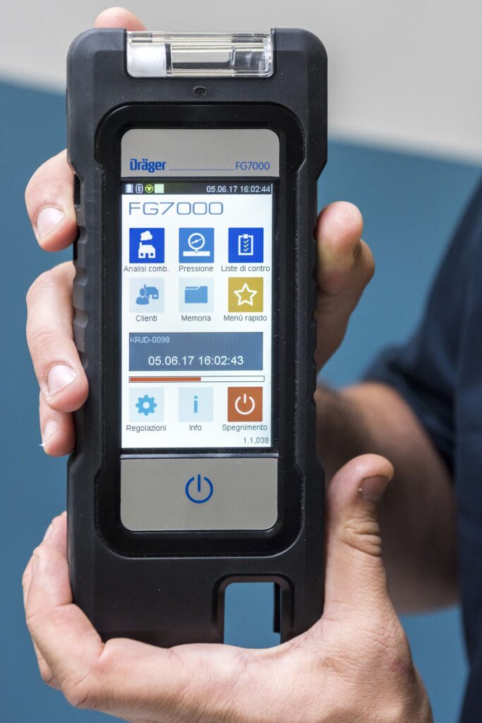 Nel analizzatore di combustione Dräger FG7000 spiccano ad esempio lo schermo a colori touch-screen sensitive e l’impugnatura della sonda fumi che, tramite l’accensione di un LED, indica il punto ottimale per il suo inserimento. Lo strumento esegue le tre misure automatiche o semiautomatiche, unitamente alla media.