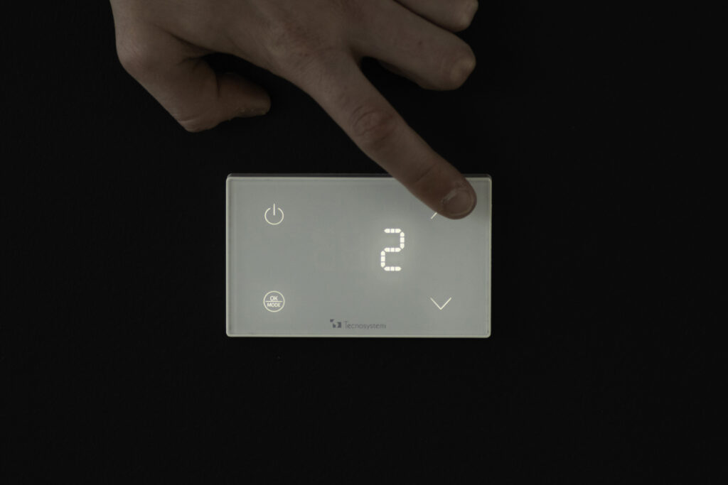 Tecnoystemi propone Astra Mini-LED, un termostato touch a parete per il controllo della temperatura e dell’umidità.