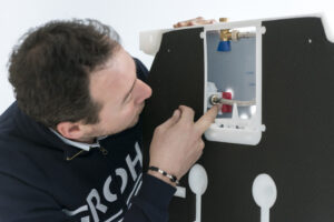 Il suo corpo in PE è rivestito di resina vinilica, che migliora la presa dell’intonaco e previene la formazione di condensa. Inoltre, la valvola di carico rende estremamente silenziosa il carico e la chiusura (il gruppo di insonorizzazione).