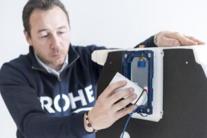 Grohe propone una cassetta di risciacquo ad incasso da 80 mm in PE, rivestita di resina vinilica, facile da installare e dotata di una valvola di carico che la rende estremamente silenziosa.
