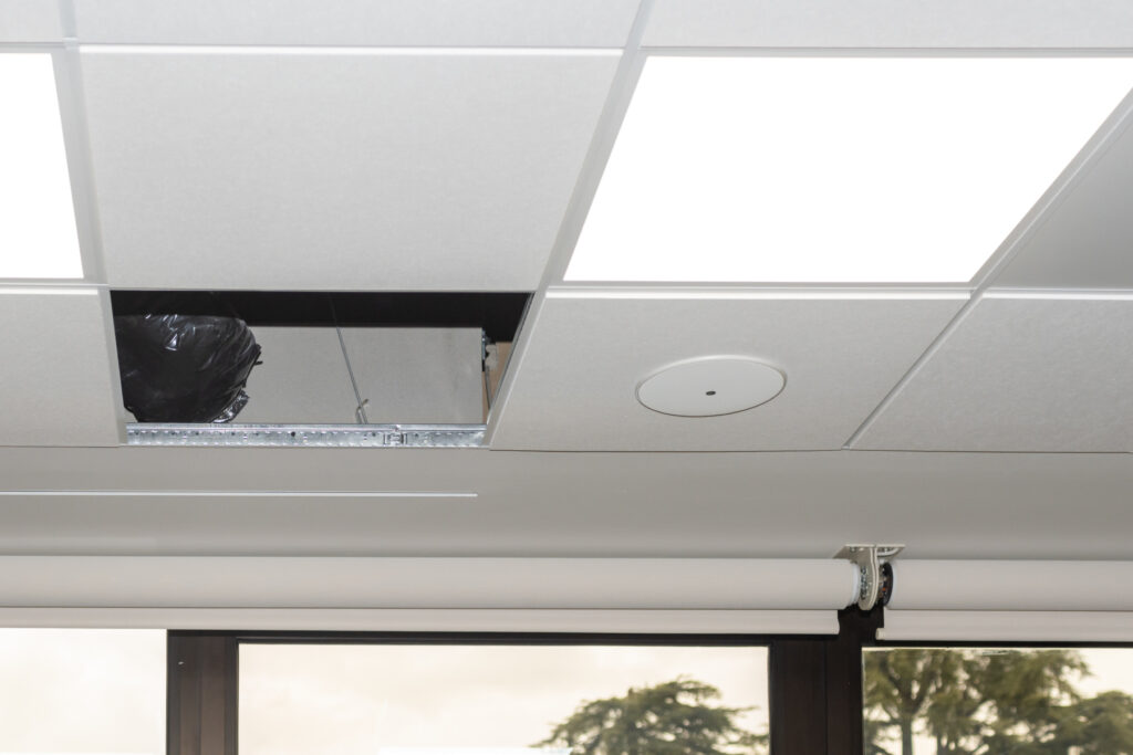 I collarini di ingresso aria sono premontati, e il plenum è predisposto per gli attacchi dei condotti VMC di serie. Le staffe di fissaggio a controsoffitto sono incluse nella fornitura. Il diffusore è compatibile con il kit di continuità PWC500027, che consente di allineare più diffusori in modo continuativo.