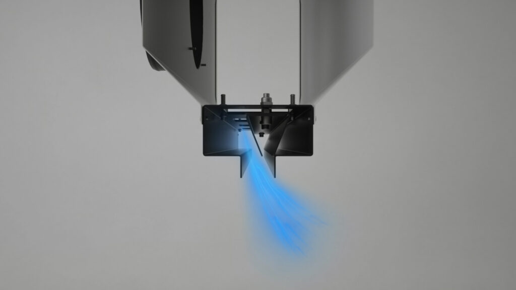 Una volta installato, questo diffusore si nasconde completamente alla vista, integrandosi armoniosamente negli ambienti. Grazie ai deflettori a scorrimento, è possibile adattare la direzione dell’aria in modo flessibile, consentendo una personalizzazione ottimale del comfort climatico.