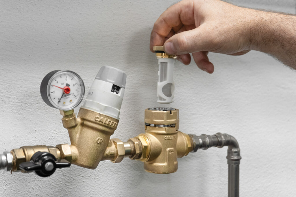 In sostituzione della prima intercettazione e del filtro abbiamo installato FILTERSTOP, perfetto per recuperare spazio, grazie alla sfera di intercettazione integrata che elimina la necessità di dispositivi aggiuntivi per bloccare il flusso. Dopo aver smontato i componenti presenti e aver montato le calotte necessarie, abbiamo posizionato FILTERSTOP a monte del riduttore, prestando attenzione al senso del flusso indicato sul corpo e abbiamo riaperto l’impianto.