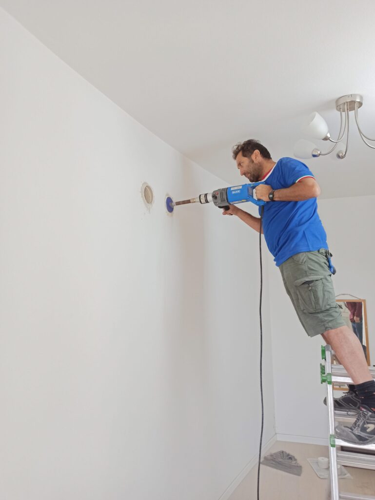 «Per l’installazione di FlowEASY raccomandiamo di scegliere una parete perimetrale adatta, preferibilmente lontana da fonti di calore dirette e in una posizione che consenta una buona distribuzione dell’aria. Per creare i fori passanti, eseguire due carotaggi da 80 mm o 100 mm di diametro sulla parete perimetrale, assicurandosi che i fori siano ben allineati, privi di ostacoli e con una pendenza negativa di circa il 3%.