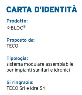 TECO propone K-BLOC®, un sistema modulare per impianti sanitari e idronici, che consente un premontaggio rapido, anche fuori cantiere.