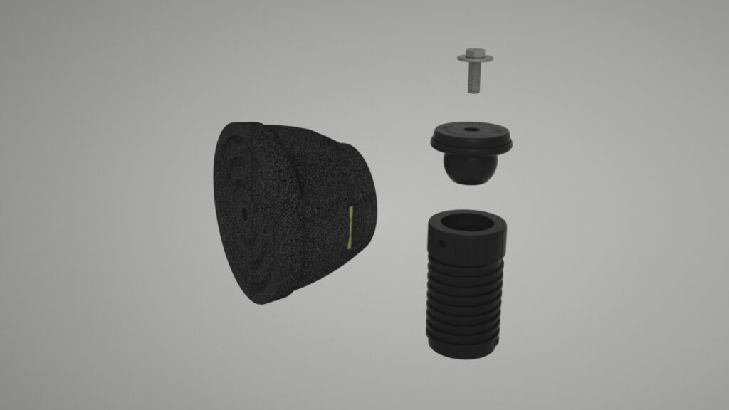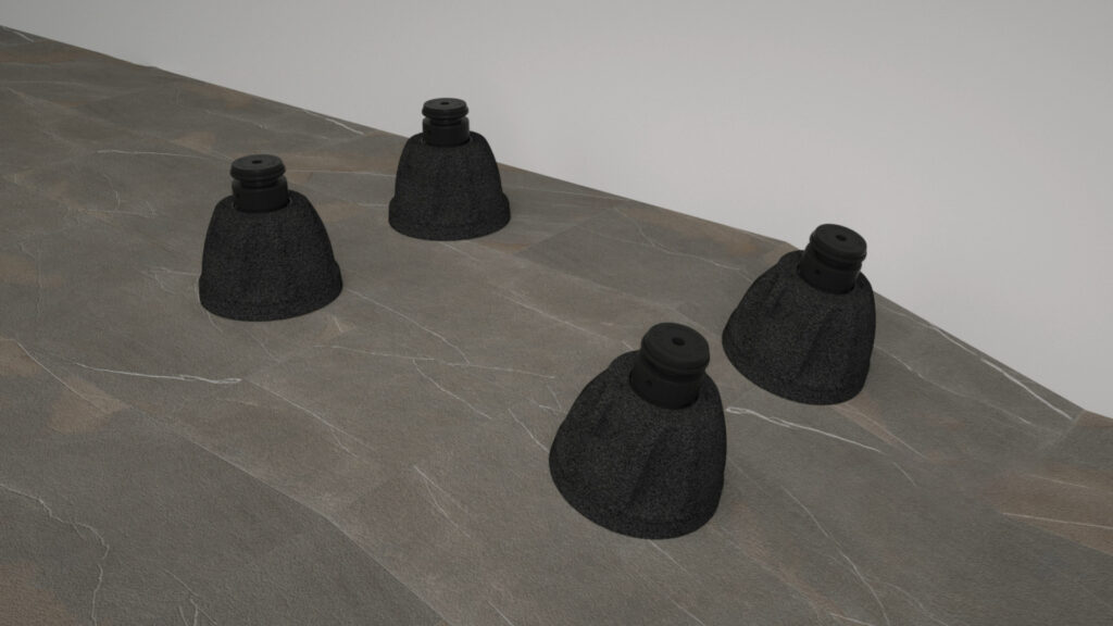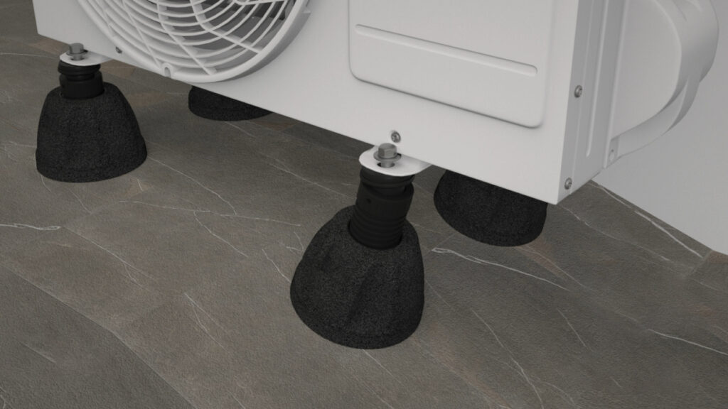 La base ottimizza la distribuzione del peso dell’unità esterna, garantendo un ancoraggio sicuro e affidabile su diverse tipologie di superfici. Il suo “cuore” risiede nella gomma vulcanizzata SBR – interamente riciclata – che offre un’eccezionale capacità di assorbimento delle vibrazioni generate dal funzionamento delle macchine.
