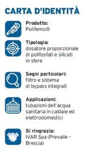 IVAR presenta Polifemo®, dosatore proporzionale di polifosfati e silicati in sfere installabile sulle tubature che portano l’acqua nella caldaia e in altre apparecchiature, quali lavatrici e lavastoviglie, per proteggerle dalla presenza di calcare e dalla corrosione causata da acque aggressive.