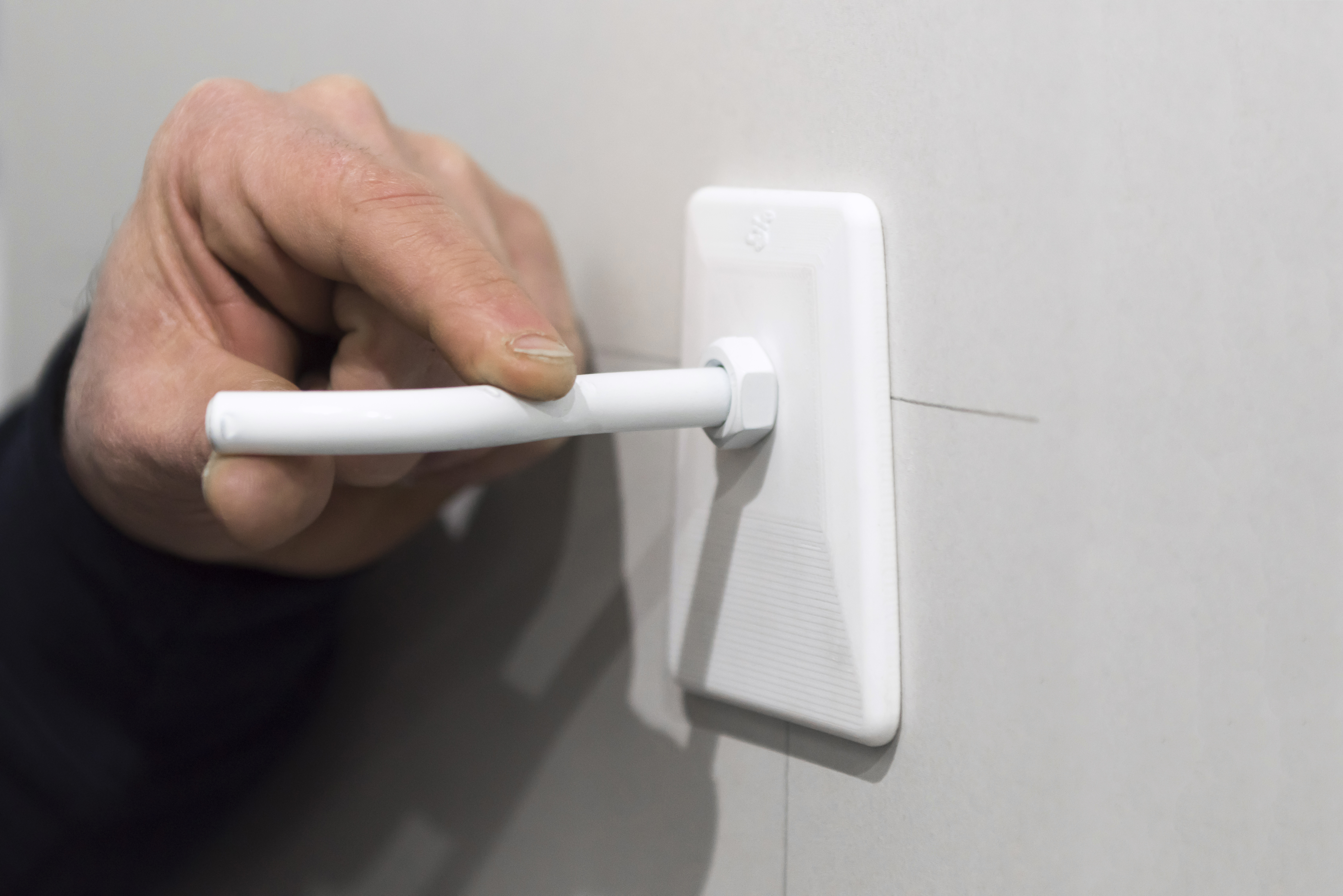 G-Magic di Gia è il sistema per fissare ogni tipo di radiatore su cartongesso: essendo premontato, velocizza e semplifica notevolmente l’installazione. Si compone di una piastra basculante brevettata, che si inserisce nel foro praticato sulla parete finita di cartongesso. Grazie al suo sistema a bascula, la piastra ruota in posizione verticale contestualmente al serraggio della scocca frontale, diventando così una robusta contropiastra dietro alla lastra.