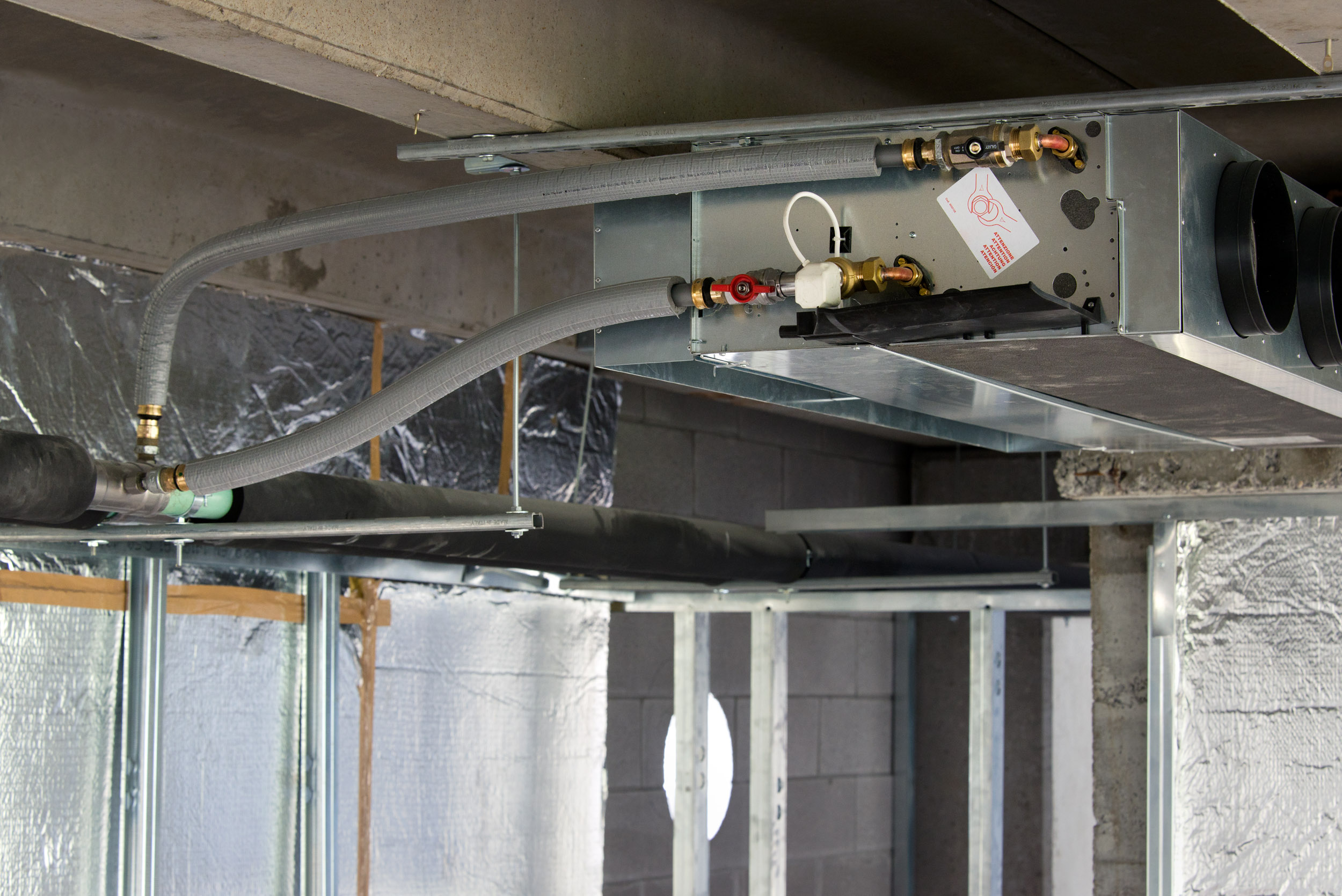 Per i tratti finali degli impianti, ovvero tratti quelli che allacciano direttamente i fancoil adibiti al riscaldamento ed alla climatizzazione, è stato utilizzato il sistema Viega Raxofix. I suoi tubi multistrato sono facili da gestire e grazie ai raccordi a pressare l’intervento è rapido, pulito e sicuro. Lo stesso Viega Raxofix è stato inoltre utilizzato per la realizzazione dell’impianto di acqua sanitaria.