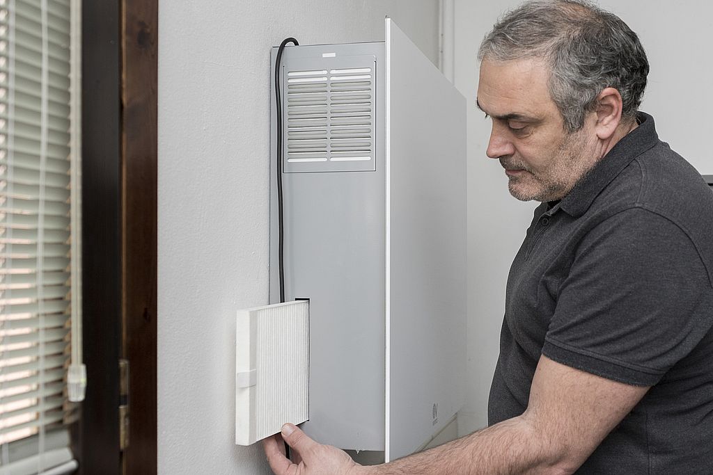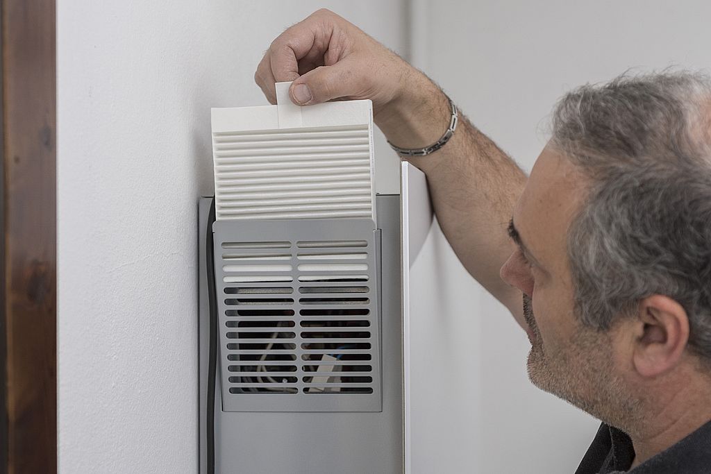 Funzionando in free cooling, l’aria viziata espulsa all’esterno viene sostituita da aria fresca di rinnovo, filtrata dalle impurità e immessa direttamente nel locale. Attivando la ventilazione passiva, l’aria prelevata dall’esterno e filtrata, è riscaldata o raffrescata dallo scambiatore di calore prima di essere immessa nell’ambiente. Con la ventilazione attiva, all’azione dello scambiatore si aggiunge quella della pompa di calore. Quando le condizioni di temperatura lo richiedono e a seconda delle impostazioni settate dall’utente, l’unità funziona automaticamente in pompa di calore.