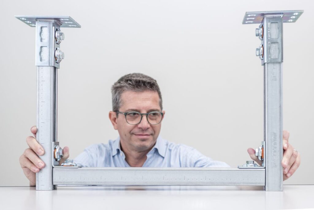 Per creare lo staffaggio desiderato, è sufficiente inserire la connessione o l’angolare sulla barra di profilo o sulla mensola, inserire il dado nella cavità, ruotarlo con due dita, trovare il corretto allineamento e serrarlo. È interessante per l’installatore la possibilità di assemblare l’intera struttura a terra oppure al banco, evitando di lavorare in sospensione o in posizioni poco agevoli come spesso accade con i sistemi tradizionali. Come il gioco del “meccano”, il sistema va composto in base al progetto da eseguire. Anche acquistarlo è facile: bastano pochi codici (profilo, mensole e basi, dadi di montaggio, angolari e connessioni) per ottenere tutto ciò che serve. La componentistica è fornita in bustine da 5 pezzi: ciò permette di comprare ciò di cui si ha effettivamente bisogno, senza sprechi.