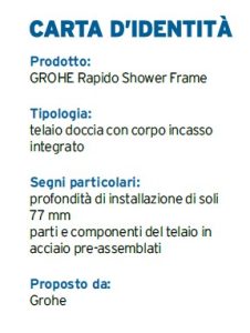 «È nostro dovere, in qualità di produttori, rispondere alle sfide attuali del settore e supportare i nostri partner professionali nel loro lavoro quotidiano nel modo più efficace possibile» ha affermato Stefano Tarabbia, Responsabile Servizio Tecnico e Formazione GROHE Italia. «Il telaio doccia con corpo incasso integrato GROHE Rapido Shower Frame è una risposta concreta alle richieste del mercato. Grazie a questa soluzione compatta, che garantisce un’installazione rapida, facile e sicura per i sistemi doccia ad incasso, il professionista idraulico risparmia tempo prezioso».