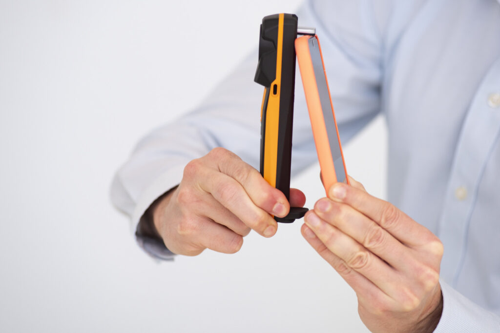 Grazie alla clip estraibile e al collegamento wireless alla testo Smart App, la termocamera si può montare direttamente sullo smartphone o sul tablet, consentendo l’uso con una sola mano, oppure essere utilizzata con due mani. È inoltre possibile fissarla su un’asta telescopica per arrivare in punti meno accessibili.