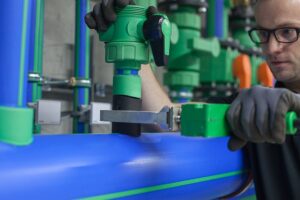 Nel settore industriale tale utilizzo costituisce un vantaggio, poiché non è necessaria alcuna interruzione del funzionamento, consentendo così di risparmiare tempo ed energia. Possono essere forati tutti i tubi principali in PP-R di diametro da Ø 75 mm e Ø 630 mm con struttura S, MF, e MF UV dei sistemi aquatherm green pipe, aquatherm blue pipe e aquatherm lilac pipe.