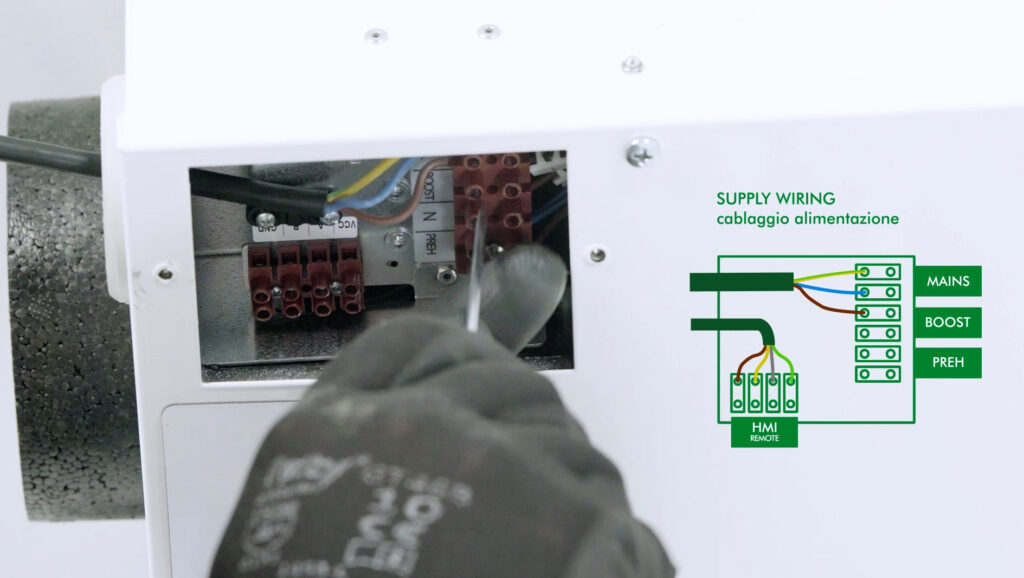 Grazie al peso ridotto (14 kg) e alle morsettiere per la connessione alla rete facilmente raggiungibili nella parte inferiore della macchina, è un prodotto facile da installare e manutenere. Anche la scheda elettronica è montata su slitta comodamente estraibile. Al momento dell’installazione si impostano i parametri di funzionamento: velocità dei ventilatori, soglia di umidità relativa, intervallo temporale della modalità SLEEP, temperature di attivazione automatica della modalità free-cooling. Quando il segnale sul display del pannello comandi remoto indica la necessità di interventi di pulizia/manutenzione sia lo scambiatore di calore sia i filtri sono estraibili dal basso. Per questi ultimi è sufficiente rimuovere i coperchi magnetici, senza cacciaviti o altri strumenti.