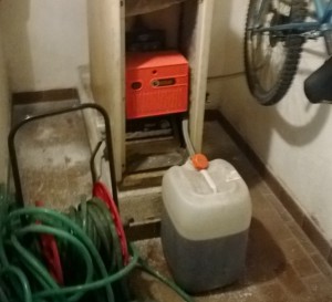 Una bottiglia vuota, uno spago, un tubo (a caso) e… la grondaia è come nuova! Foto scattate a Evolene (Svizzera) I.N. Milano