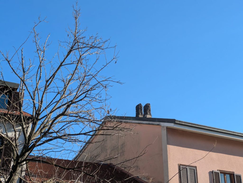 Una bottiglia vuota, uno spago, un tubo (a caso) e… la grondaia è come nuova! Foto scattate a Evolene (Svizzera) I.N. Milano
