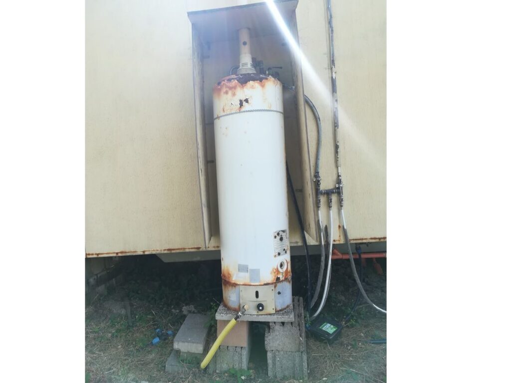 Un “moderno” scaldacqua a gas a servizio di una casetta nel bosco…