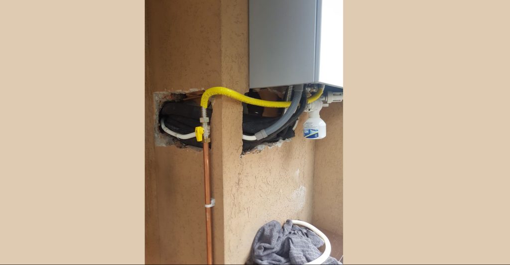 Dalla cucina al balcone, con tubazioni in acciaio sottotraccia…