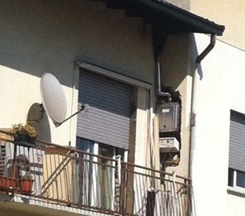 Simpatica caldaia “scolpita” in facciata con scarico fumi “quasi” a tetto…