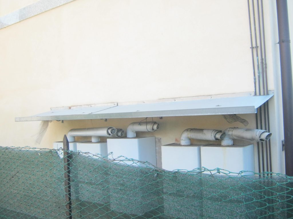 Cinque caldaie installate in prossimità dell’ingresso principale di un condominio…