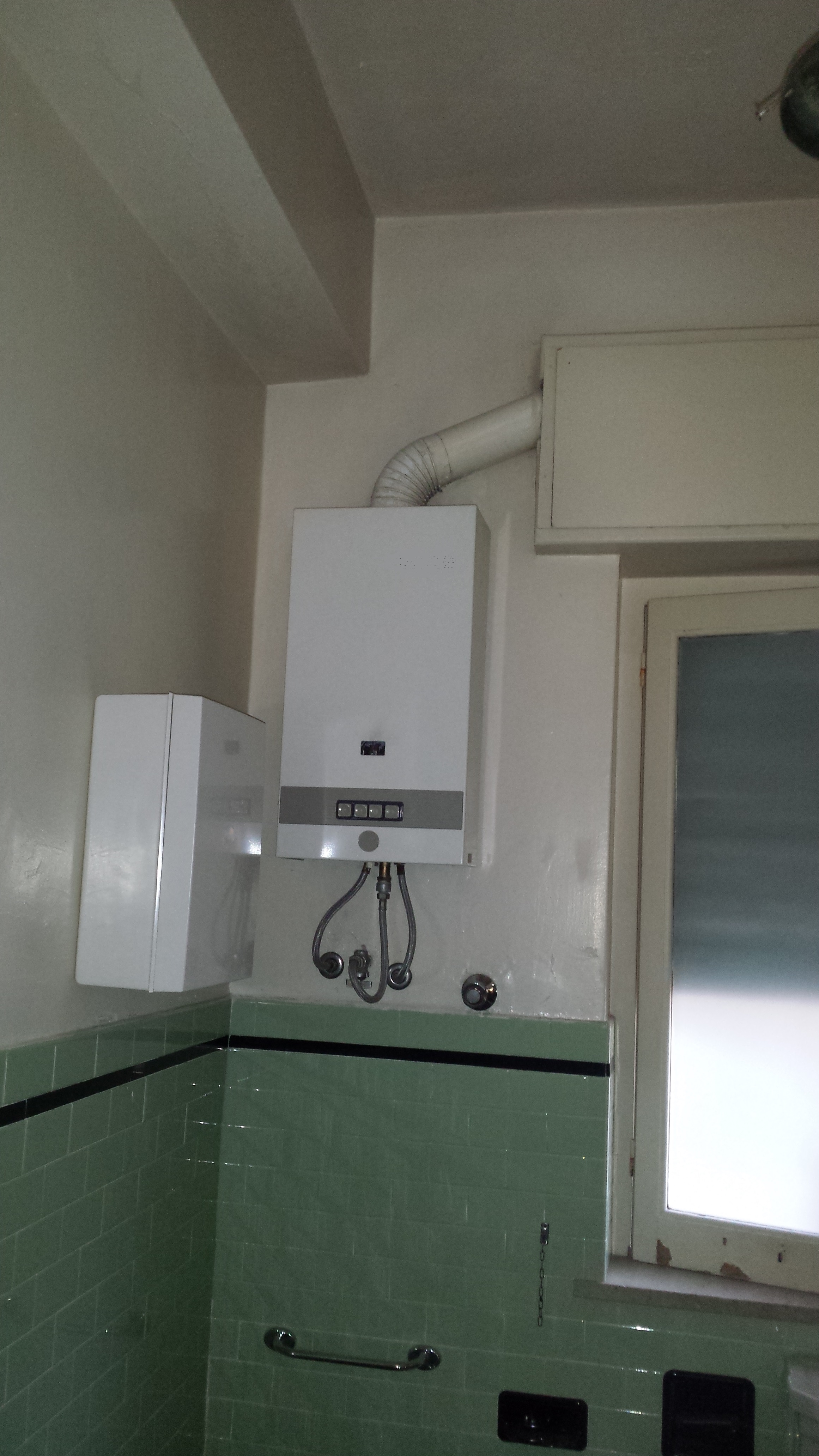 - scaldabagno a gas con camera aperta installato in bagno;