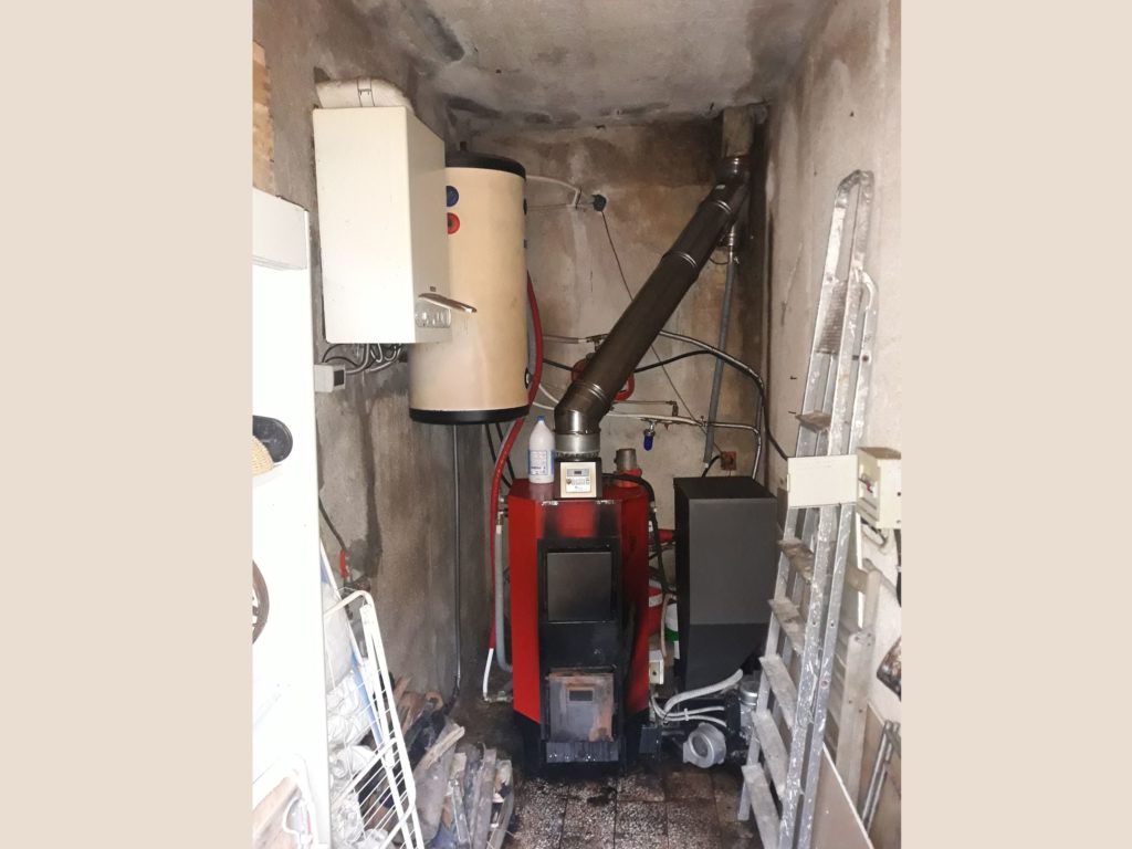 Nel locale in cui è installata la caldaia a legna, quasi attaccata, anche una caldaia a gas GPL con tanto di contatore e regolatore di 2° stadio, sotto il piano di campagna…