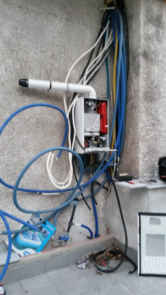 Caldaia avvolta da abbondanti tubazioni per futuri allacci…