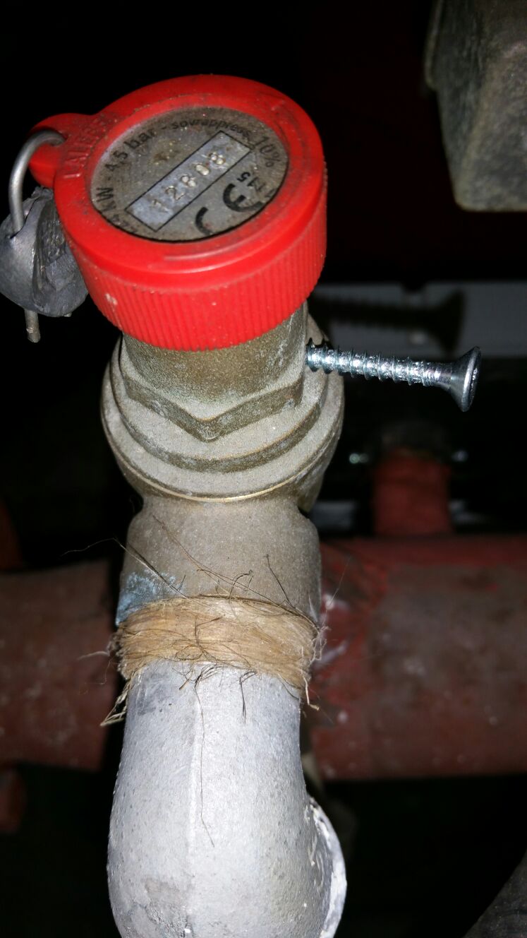 Metodo decisamente ‘drastico’ per fissare una valvola di sicurezza al suo rubinetto.