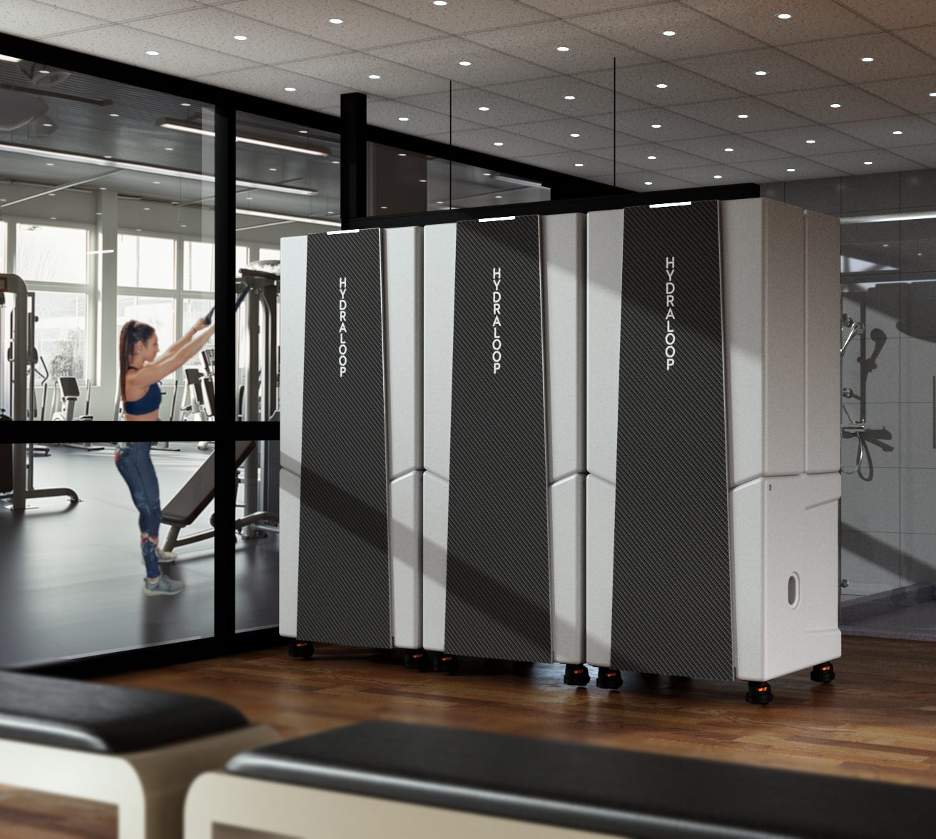 Hydraloop è il dispositivo per il riciclo delle acque grigie in modalità decentralizzata, che tratta le acque di scarico e di condensa provenienti da apparecchi igienici ed elettrodomestici. Il processo prevede diversi stadi (sedimentazione, flottazione, bioreattore aerobico, disinfezione UV, ecc.), in grado di eliminare residui solidi (capelli, sapone, ecc.) e batteri senza utilizzare filtri e prodotti chimici.