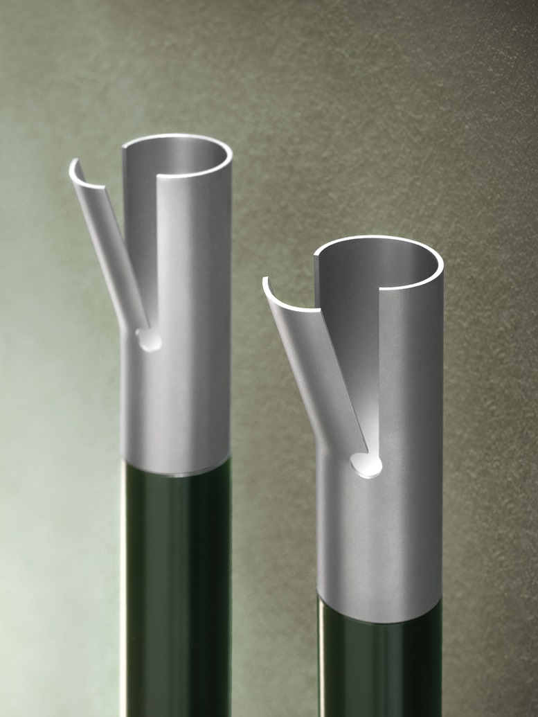Dante O. Benini ha studiato con Antrax IT (Resana, TV) un dualismo materico tra il particolare in acciaio inox satinato e il corpo del tubolare scaldante, in alluminio 100% riciclabile, disponibile nelle oltre 200 colorazioni a catalogo tra verniciature goffrate, lucide e opache.