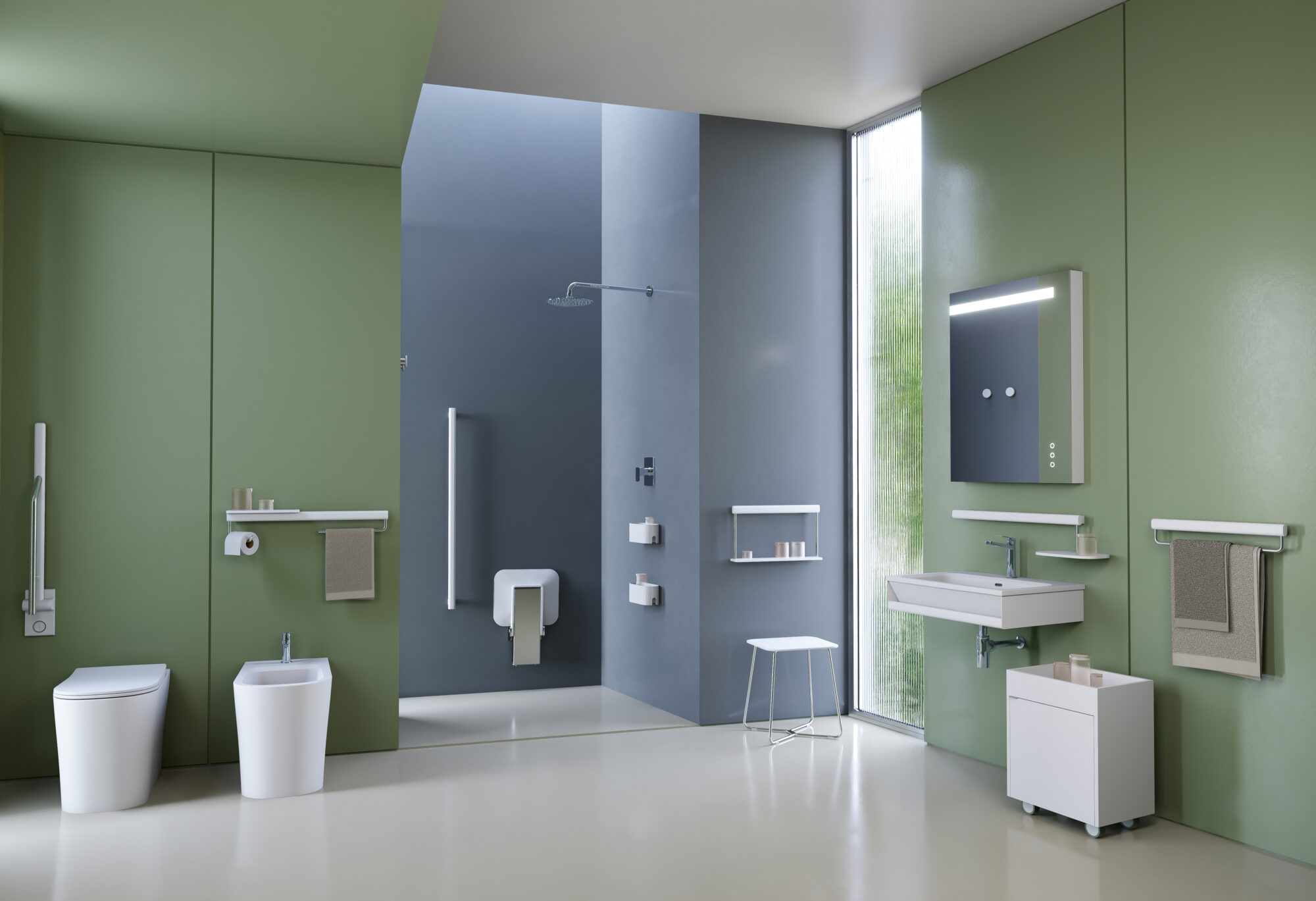 Nell’interpretazione della sua visione di ambiente bagno inclusivo e accessibile, moderno e di design ma sicuro ed essenziale, la dinamica azienda di Orvieto propone un sistema d’arredo, configurato per generare sensazioni di benessere e confort, un luogo dove ognuno, indipendentemente da età, sesso cultura od impedimenti psico-fisici, possa essere libero di curare la propria intimità in completa autonomia.