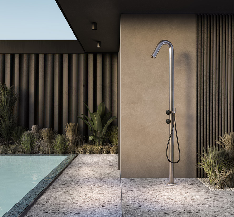 La riscoperta degli spazi esterni come teatro naturale della nuova quotidianità è la premessa ideale della nuova colonna doccia OUT.SIDE della Divisione Outdoor di FIMA Carlo Frattini (Briga Novarese, NO), azienda sinonimo di competenza progettuale e capacità innovativa nel settore rubinetteria.