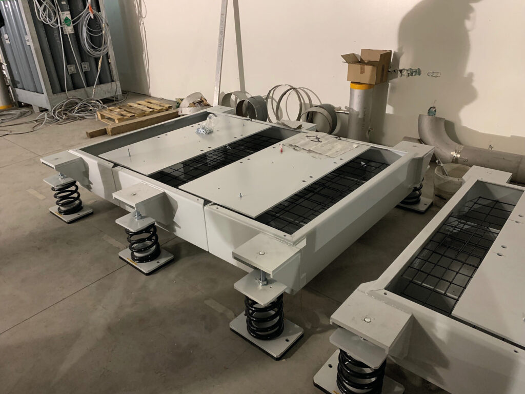 Soleco, oltre agli antivibranti, progetta e dimensiona basamenti inerziali che contribuiscono a ridurre l’ampiezza delle vibrazioni e a uniformare il carico sui punti di appoggio. Le norme tecniche delle costruzioni prevedono che impianti ed elementi non strutturali siano verificati, insieme alle loro connessioni alla struttura, per l’azione sismica corrispondente a ciascuno degli stati limite considerati.