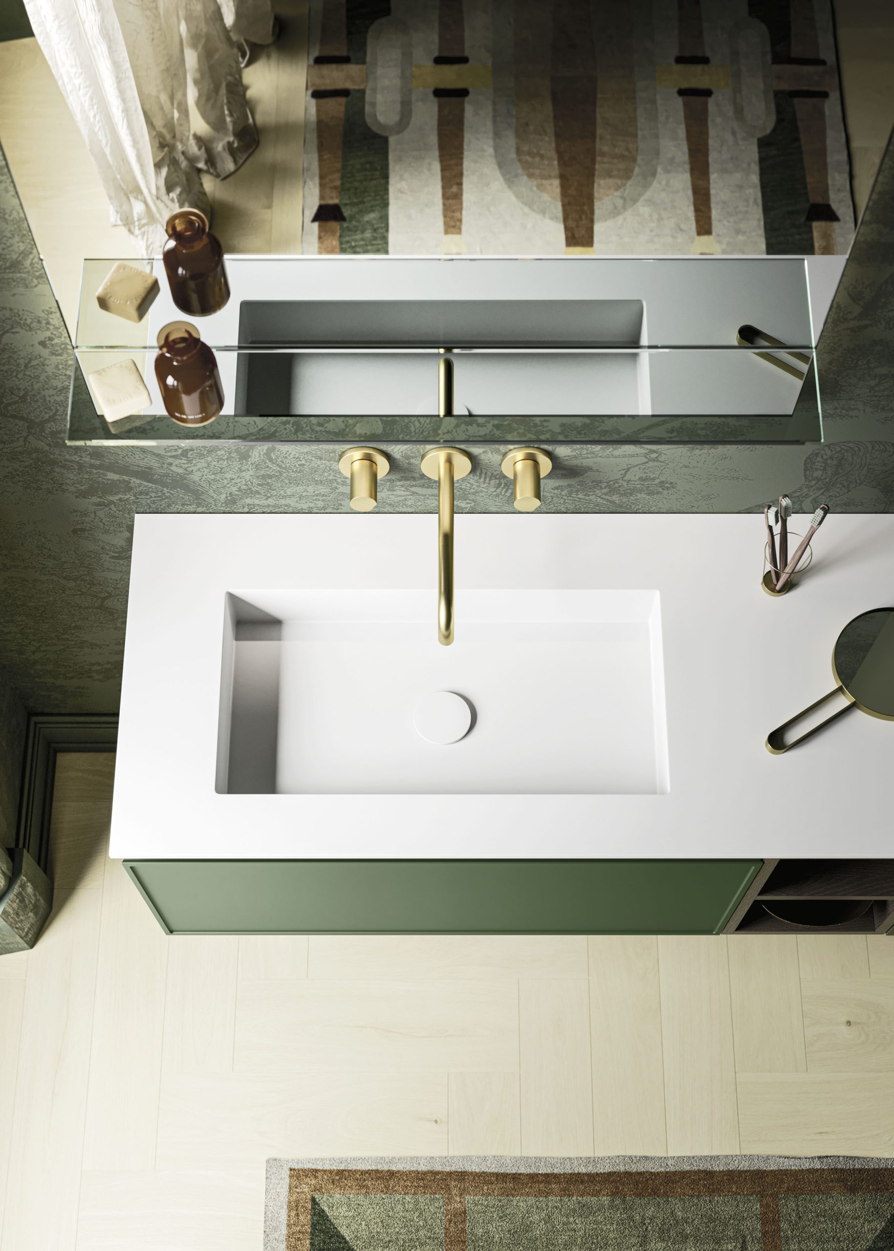 La grande modularità del programma consente di creare molteplici configurazioni, coniugando ricercatezza ed eleganza, adattandosi facilmente ad ogni stanza da bagno.