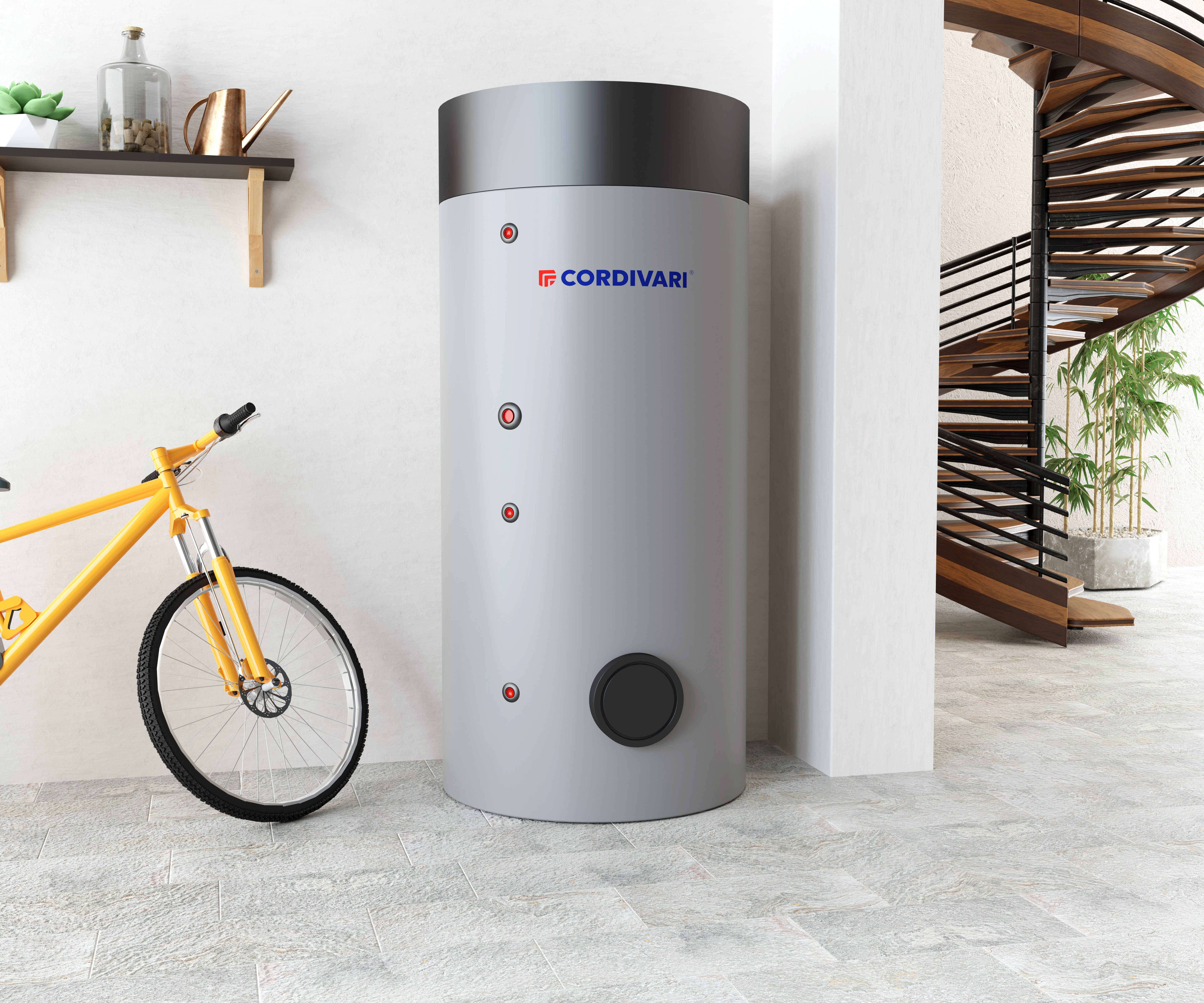 BOLLY® PDC DOUBLE CYCLE di Cordivari (Morro d’Oro, TE) è un bollitore per produzione ed accumulo di acqua calda sanitaria (ACS) con uno specifico sistema di scambio termico, studiato per ottimizzare l’efficienza dei generatori a Pompa di Calore, che può scaldare il fluido in esso contenuto separatamente ed indipendentemente in due zone e garantirne la stratificazione termica, così da scaldare solo il volume di fluido necessario, in maniera rapida ed efficiente. Ancora maggiore efficienza con la Centralina Full Control, che può programmare il riscaldamento differenziato dei volumi per scaldare quando e quanto fluido serve.
