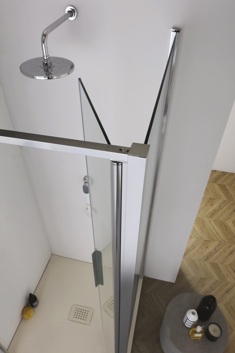 Nella versione con chiusura pieghevole, grazie all’innovativa cerniera a 360°, GL6 garantisce l’accesso totale al box doccia, creando uno spazio completamente aperto e che sfrutta al massimo ogni centimetro. Nel modello con porta saloon, GL6 combina praticità e design: le due ante sono dotate sia di guarnizioni in silicone sottoporta sia di barra salvagoccia in alluminio, da fissare sul bordo del piatto, che impediscono ogni fuoriuscita d’acqua. Grazie alla chiusura magnetica questa soluzione rappresenta una soluzione moderna e funzionale per ogni bagno moderno.
