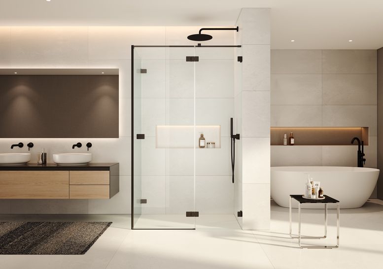 La Serie X-Line include box doccia con porte basculanti dotate di cerniera con sistema a pendolo con apertura fino a 270°, filo vetro sul lato interno per la massima facilità di pulizia. Il meccanismo di sollevamento/abbassamento invisibile assicura una chiusura graduale e una maggiore durata della guarnizione. Realizzati con vetro temperato di sicurezza da 8 mm, tutti i modelli garantiscono una tenuta stagna fino a 11 litri/minuto e sono disponibili in altezza standard di 2000 mm, con possibilità di personalizzazione fino a 2200 mm.